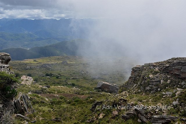 Berglandschap met langstrekkende wolken.