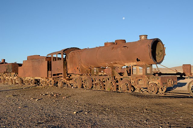 Stoomlocomotief op het treinenkerkhof in Uyuni.