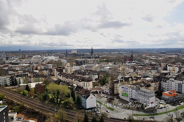 Uitzicht over Bochum vanaf de schacht bij het bergbau-museum.