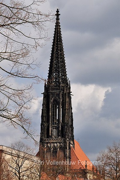 De zwarte toren van de Sint Lambertikerk, Münster.
