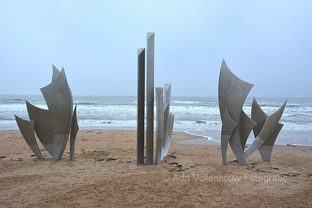 Monument Les Braves Omaha Beach. De maker zegt over dit monument het volgende: Ik heb dit gecreƫerd om de moed van deze mensen te eren: Zonen, echtgenoten en vaders, wie hun leven in gevaar brachten en vaak hun leven offerden met de hoop de Fransen te bevrijden.