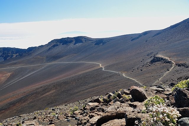 Wandelpad door de krater. Haleakala National Park.