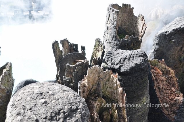 Aangevreten palen aan de rand van de blauwe hel, Kannawa.