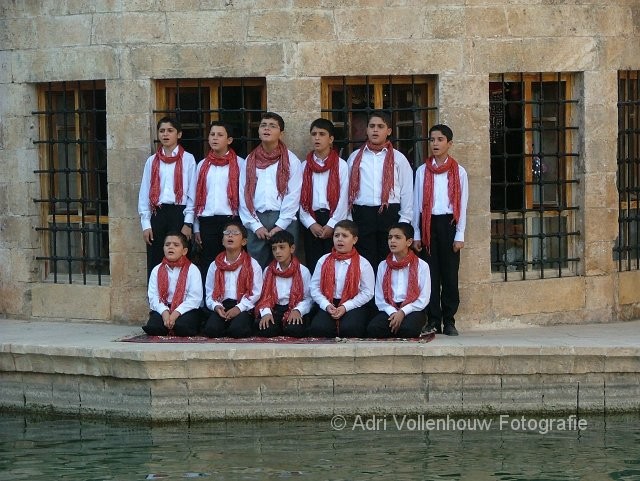 Jongenskoor bij vijver van Abraham, Sanliurfa