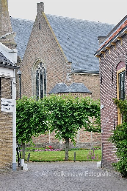 Uitzicht op de Sint Adriaanskerk vanaf de Zuidstraat.